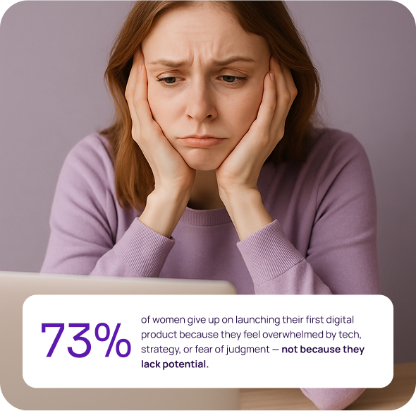 After years of struggle, I discovered a method that allowed me to turn my ideas into real income. Since then, I’ve helped over 2,000 women break through fear, confusion, and doubt — and finally launch their first successful digital products.